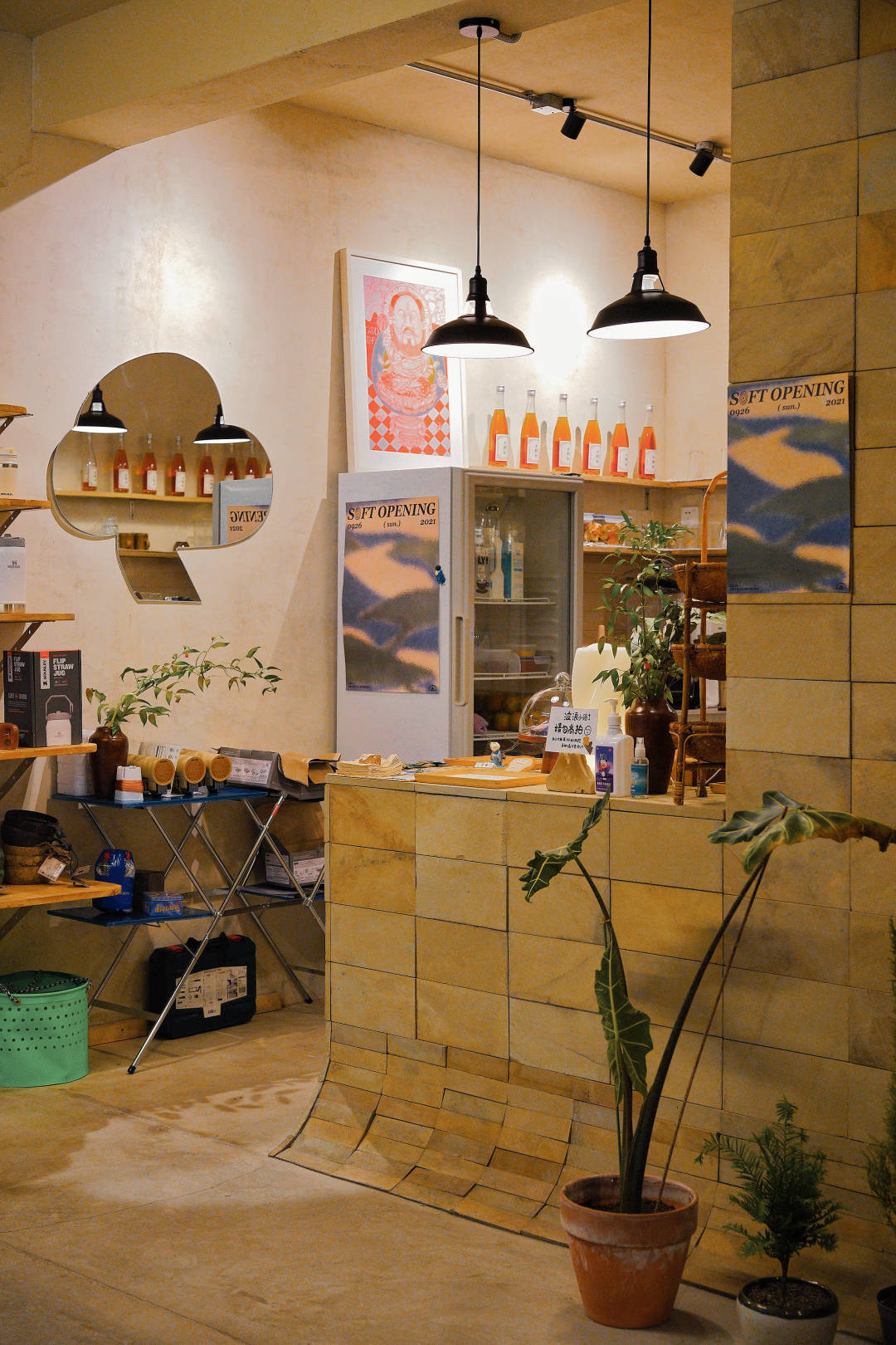 像云朵又像蘑菇的镜子和木板、一些果树、零零散散的盆栽,还有些虽然没表明但是为了好玩而向大众售卖的户外产品,都昭示其将好玩贯彻到底的决心。