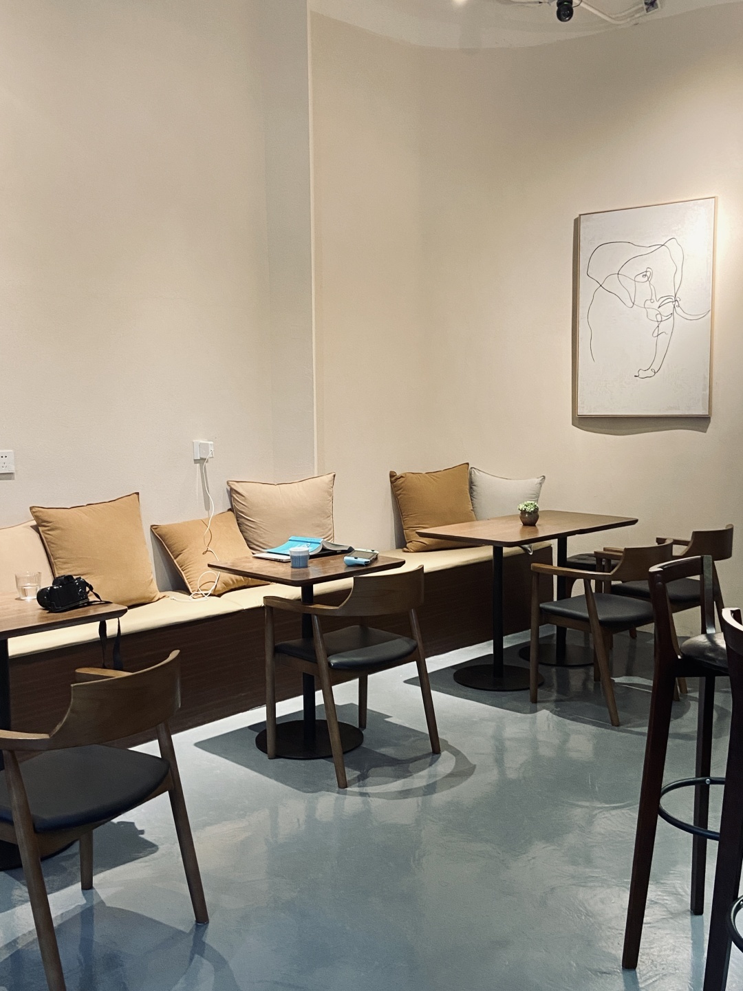 在“氛围感”“莫兰迪”等高热门词汇之外,或许可感受到它所传递出素朴、沉静的质感。环境、音乐、店员,以及服务方式都具有难得的克制。很适合,点上一杯并不花俏,香气悠长的咖啡,享受整理感带来的舒适与宁静。