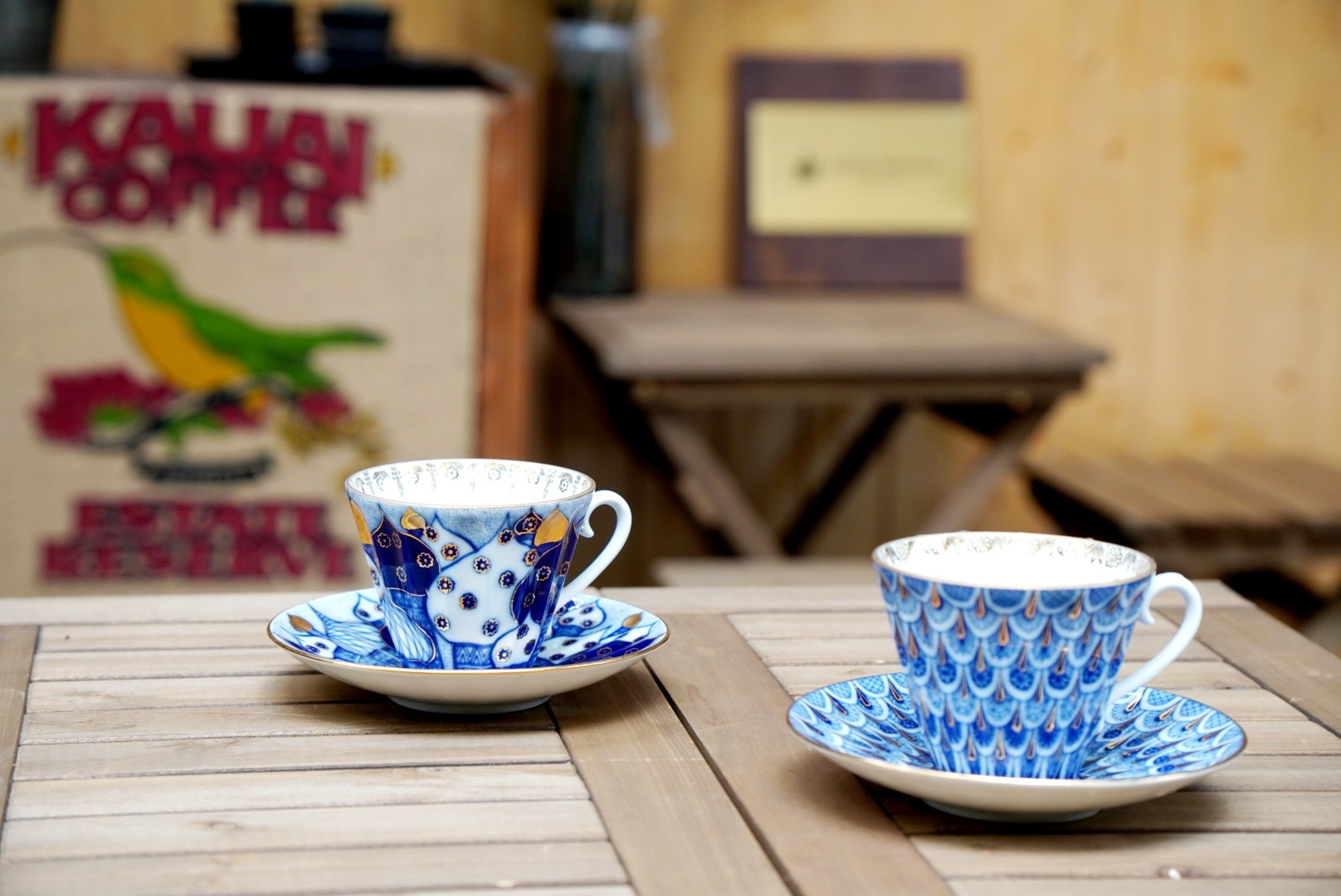 中古风的灯具桌椅、花纹多样的咖啡杯、用邮票拼成的墙面装饰品,店主小雨用柔软点缀每个角落。