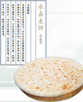 来到永嘉必吃永嘉麦饼。麦饼这一小吃在金华、宁波、台州等地其实都有流行,具体源于何时何处尚不可考, 但永嘉麦饼据说已有千余年的历史。和浦江麦饼讲究越薄越好不同,永嘉麦饼并不在意饼身的薄厚,许是因为诞生之 初,这一小食的定位就在于当地务农人的常备干粮。一份饼的标配是半斤麦粉,一汤匙菜油,搅拌揉透,成凹字形, 嵌入咸菜、鲜肉、炊虾。烘烤过后的永嘉麦饼个头偏大,外皮酥脆,里面的馅料柔软烫嘴,一个就能管小胃人的一餐,满足且充实。