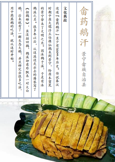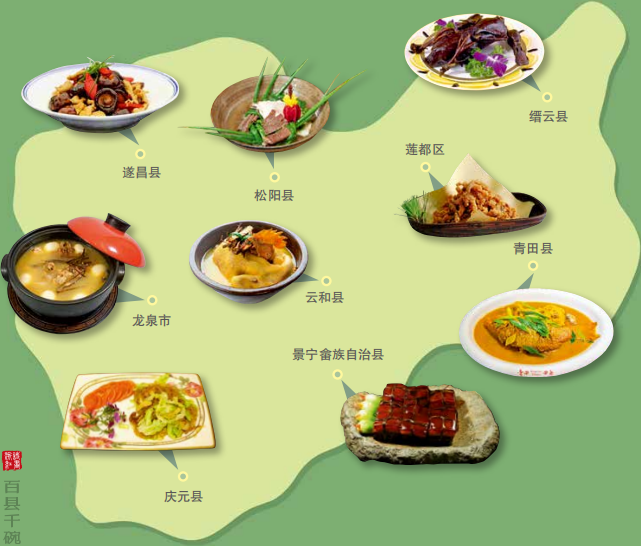 景宁的畲乡药膳出了名的精致美味。取桂圆、 山药与牛肝菌、绣球菌、松茸等稀有食用菌种同煮,尝到菌菇鲜的同时,还能滋阴补阳,补充元气,增强免疫力。畲乡的小吃更是丰富多彩,一品黄金粽、 双珍福贵丸、三色麻叶糕、四喜沙湾饼……从一到十,每一道小吃名都表达着畲乡人最真诚的祝愿。