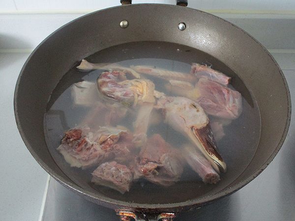 4.先把鸭肉冷水下锅,焯水后捞起洗净