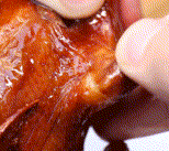 吃乳鸽最暴力最爽的吃法就是原只直接开撕,抓着乳鸽的小嫩腿,轻轻往外扯动旋转,肉汁就会缓缓地迸发出来,脆皮裹着筋膜撕裂,仔细听会有一种奇妙的酥酥的响声。