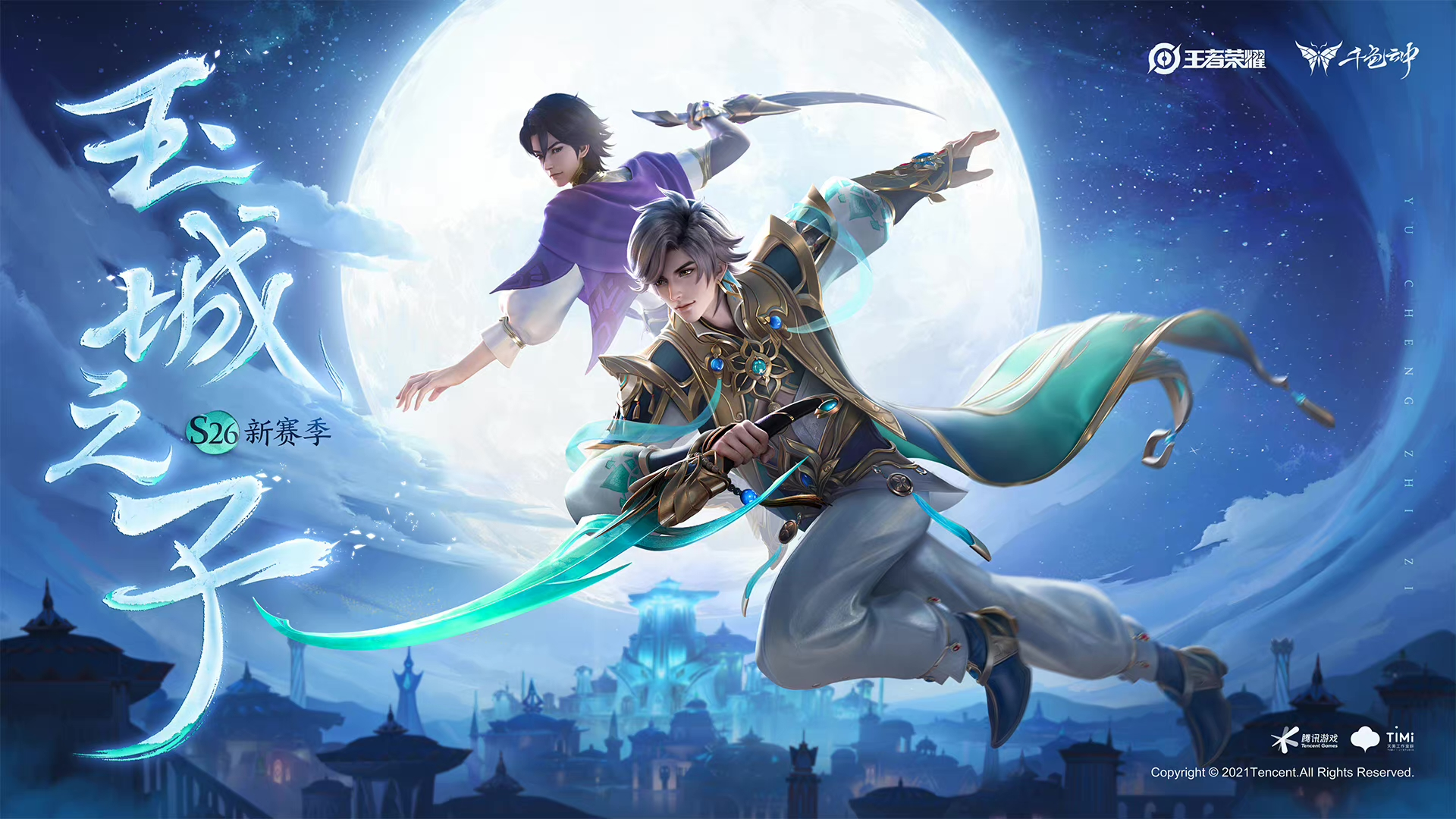 上图是官方发布的宣传图,S26赛季【玉城之子】版本共出现了两位英雄!其中一位就是新赛季更新后同步登场的新英雄-暃;另外一位就是早以前曝光的新英雄-晟(伽罗的弟弟)。