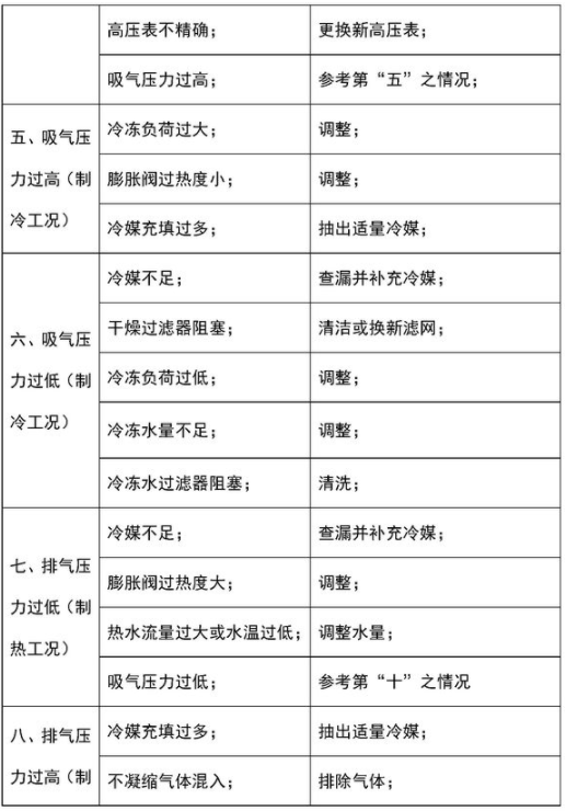 6、主机试运转时,应注意高、低压力表指示之压力是否正常,冷媒充过量或不足均会影响压缩机寿命及用户侧水温。
