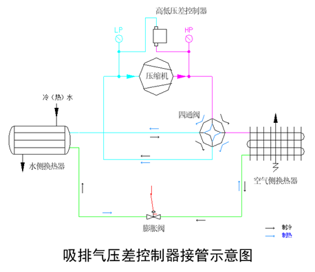 1、为确保壳管换热器及管路系统有足够的水量,壳管换热器出水侧应装设水流开关,水流开关的安装应严格按照其使用说明书的要求且与压缩机连锁控制,以避免制冷时壳管换热器因缺水导致内部冷冻水冻结,低压侧压力太低,系统回油不良或者制热时壳管换热器压力过高,导致高压保护等现象。