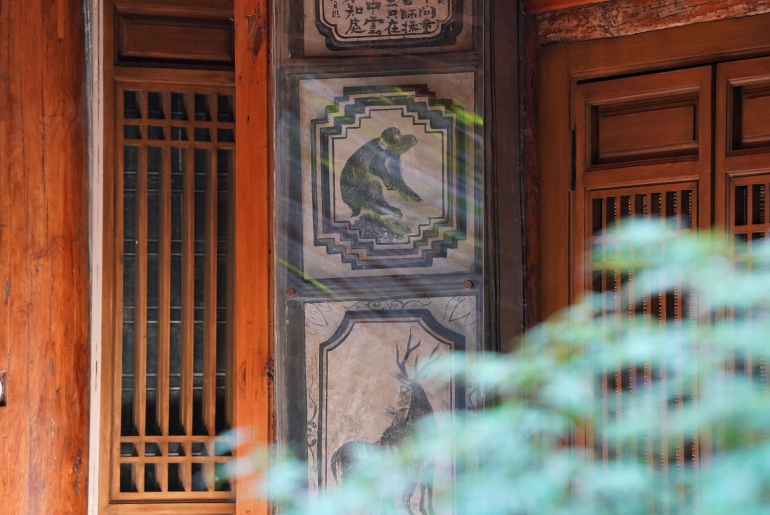 酒店内的砖瓦都是来自于清末的老物件,雕花雕刻都是由当地的木匠师傅们手工精做。在酒店修缮过程中,工人小心地从墙壁上刮掉厚厚的白色石灰,意外发现了许多保存完整的128年前的壁画。 这些传统的单色壁画包括书法,诗歌和绘画等,如老子下山,喜上眉梢等经典图案,彰显了原本的主人赵国泰进士高雅的气质和情趣。