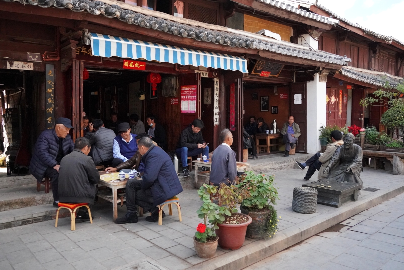 很多人会说,现在的古城都一个样子,一样的店铺一样的纪念品、一样的外地老板一样的商业气息,但巍山古城不同,目光所及大多是本地居民,街头巷尾还是原本的生活气息,临街的小店也仿佛持续了很多年,喝茶的、写字的、卖日用品的、做手工和小吃的,前店后家怡然自得,不慌不忙、不用喇叭不用吆喝,喝茶下棋聊天,商业气氛“恰到好处”。老街上很多家的门铺前贴着守孝期间的白色春联,星拱楼下门洞里最醒目的是两侧四面讣告栏,红纸黑字,一张讣告,言近旨远,是古城的礼法,也是文化的传承。这样的场景告诉你,巍山还是当地人的巍山,人情和礼节都在。