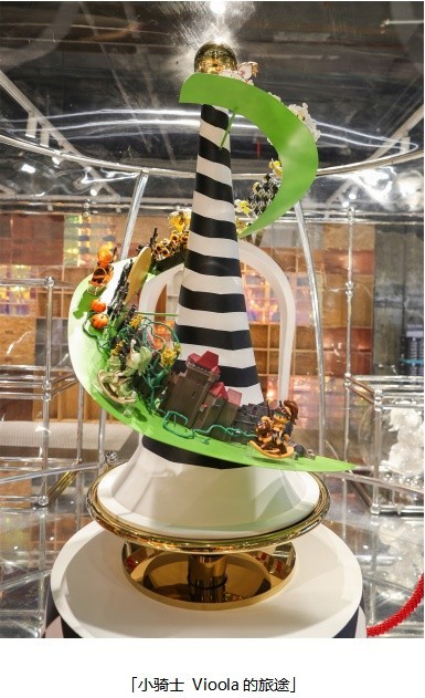 快闪展示区的正中央,展台犹如小骑士 Vioola手中的长剑,同样布置有数款历代已发售的小骑士 Vioola,随着装置旋转向上。