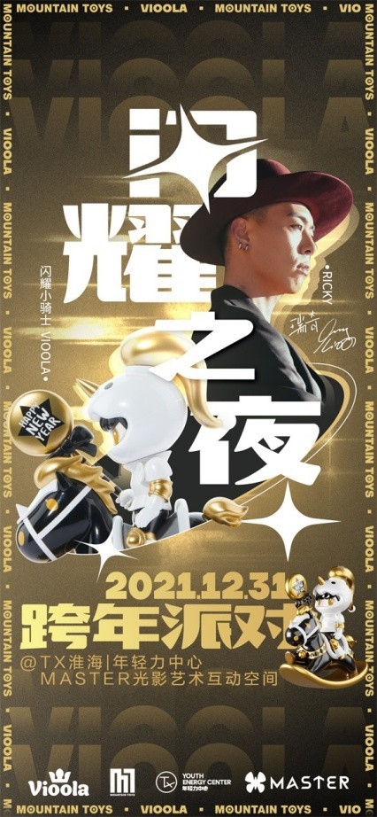 「跨年海报」关于MOUNTAIN TOYS:MOUNTAIN TOYS位于中国上海,作为一家文化品牌,它立足于潮流玩具,并通过这个载体去传递观点和态度。自2015年成立以来,MOUNTAIN TOYS一手打造了多个头部潮玩作品,为整个市场输入了更新锐更坚实的设计理念和艺术价值,推动了行业的长期发展。潮玩市场兴起,年轻化的消费市场进入潮流消费新纪元,这给国内的艺术家们提供了巨大的发展机遇。Jim Lee和他的潮玩工作室MOUNTAIN TOYS以其独特的品牌个性正在被越来越多的潮流玩家所追捧。除了小骑士 Vioola之外,MOUNTAIN TOYS还推出了许多潮玩形象,代表作包括:睡衣公主黛米,太空吉姆 Space Jim,PinoQ和糖果妹等。