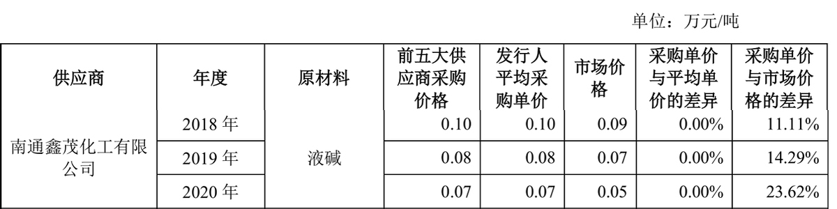 富士莱主要向南通鑫茂采购液碱、硫酸、盐酸和次氯酸钠,但采购价格却高于市场价。