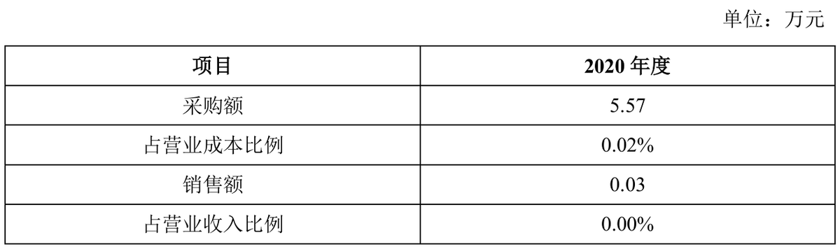 对此,招股书中称,2020年,公司向华虞环境主要采购氯化钙液体,向其销售工业盐、聚合氯化铝0.03万元。前述交易均属零星交易,金额较低,具有合理商业背景。