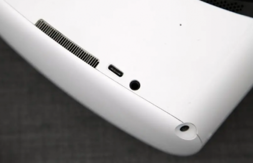 产品的按键和接口布局相较前几代产品有了一定的变化,头显的顶部是它的Type-C接口、3.5mm耳机孔以及散热开孔。