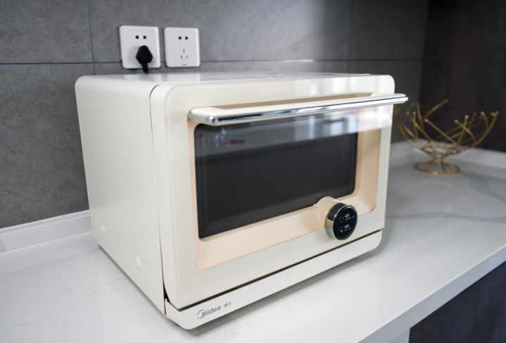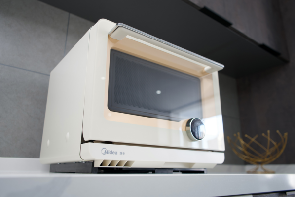 颜值即正义。第一眼看到美的微蒸烤料理炉真身时,笔者就被它的颜值惊艳到。笔者购入的是简约白配色,整体机身主体为柔和的米白色,配上淡淡的肉粉色,显得非常温柔。