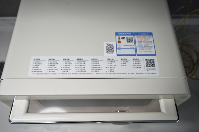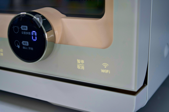 这款微蒸烤料理炉链接Wi-FI的方式也比较便捷,用美居APP扫描顶机器顶部二维码,再根据提示点击Wi-FI触摸键,输入密码后,就能迅速完成操作。