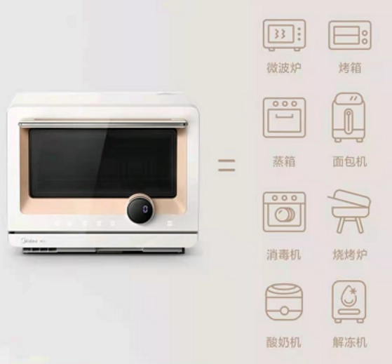 美的微蒸烤料理炉集多功能于一体,除了是微波炉、蒸箱和烤箱外,还能实现面包机、消毒机、烧烤炉、酸奶机、解冻机等厨房电器的功能。拥有这一台料理炉,就可以烹饪各种各样的美食,轻松告别拥挤厨房。