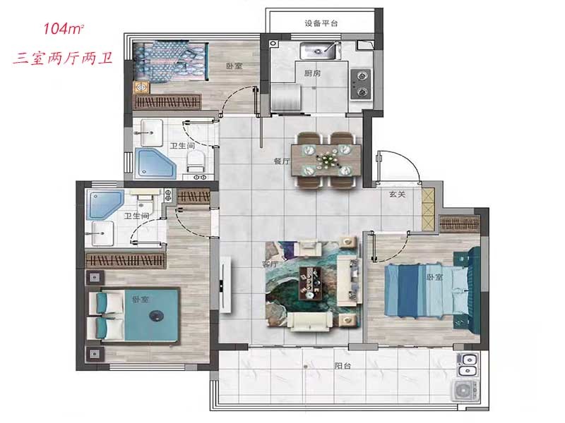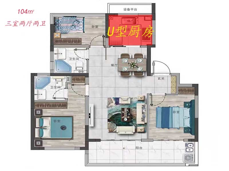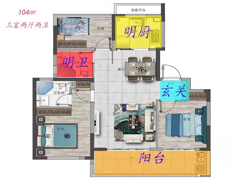佳源阅庐璟园是典型的刚需楼盘,今天来带大家看一下104㎡户型的标配有哪些?
