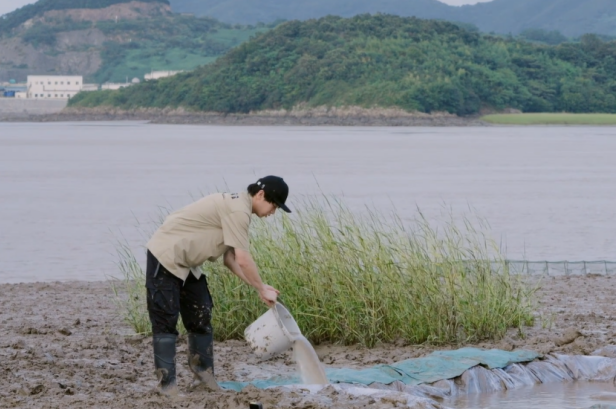 他们看见工作人员往泥坑里倒水,特意主动上手帮忙一块儿倒。