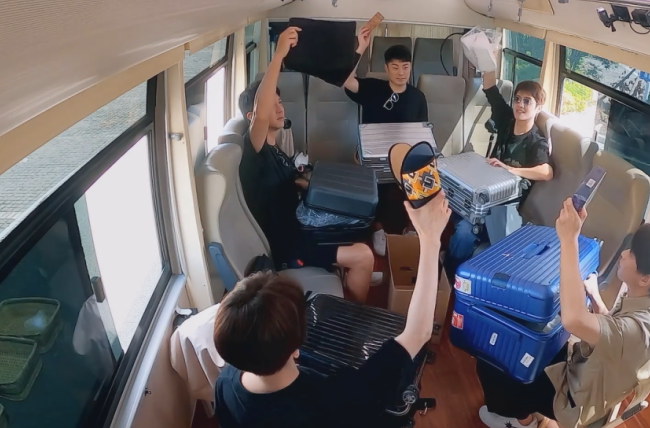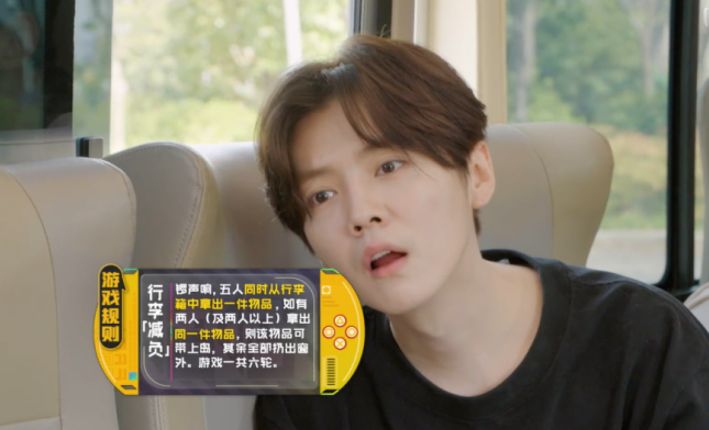 更损的是,节目组在上岛前的大巴上,还玩起了丢物资游戏,只有两个以上的人同时拿出一样的物品,这东西才能留下来。