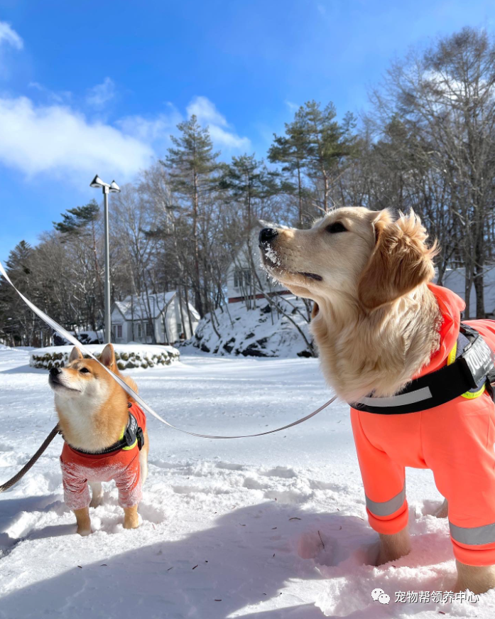 虽然柴犬看着更小巧,但其实它已经2岁了,是个很成熟稳重的哥哥,而金毛是才6个月大妹妹。