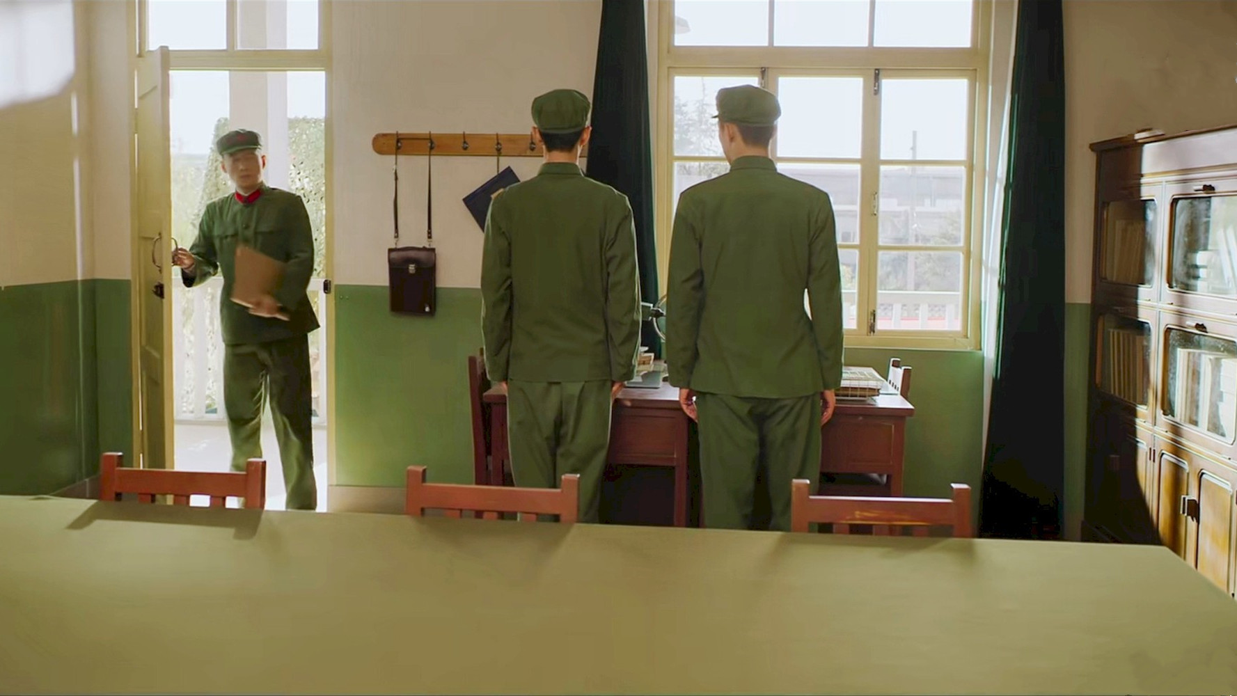 比如两个人在那里聊着天,宋建设进来了,两个人都立马站直了,但是,顾一野明显站得更刻板。