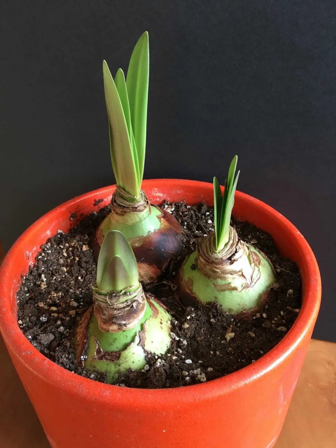 只不过养在室内的朱顶红一定要稍微控制浇水,直到朱顶红的鳞茎顶部长出新的叶子,就可以开始增加浇水的频率,土壤干透浇透,当然也不要浇水过度频繁,不能让土壤经常潮湿或积水,如果花盆底部有托盘垫着,托盆上一定不能有残留的水分。
