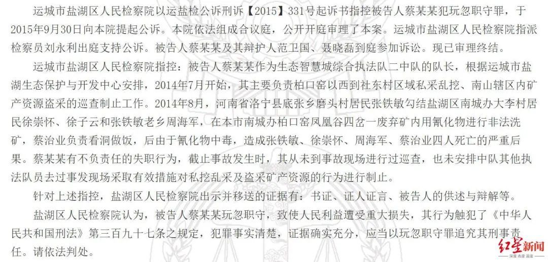 ▲运城市盐湖区公职人员蔡某某因玩忽职守获刑