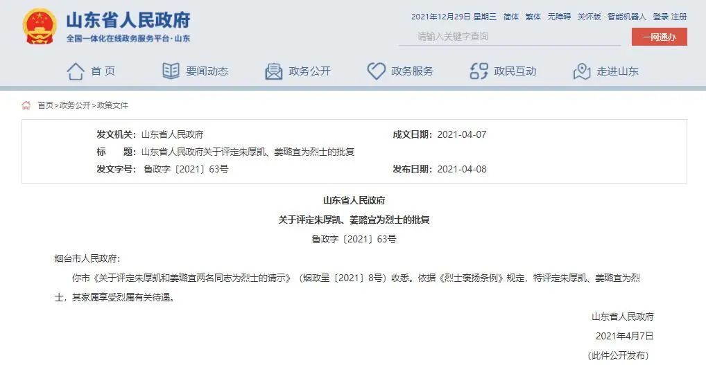 详情:烟台两名“90后”消防员壮烈牺牲,山东省政府作出批复