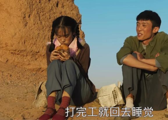蒋欣饰演的申纪兰每天辛苦劳作,吃得马马虎虎,饭碗却斗大一个。