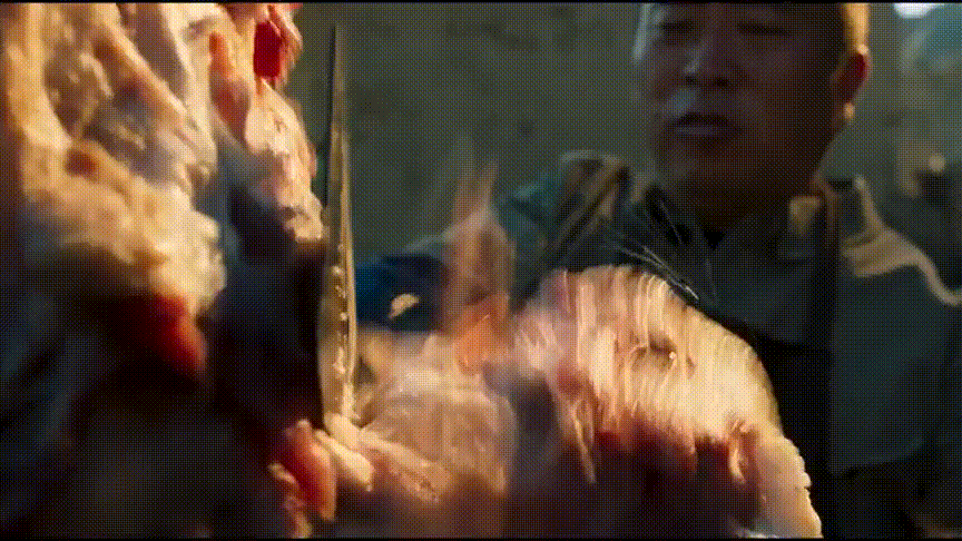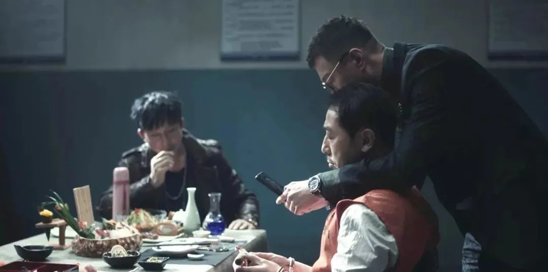 故事开场不久就是宁理饰演的马帅在监狱里吃刺生,一场吃戏就把人物的嚣张和故事环境交代了。