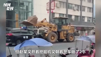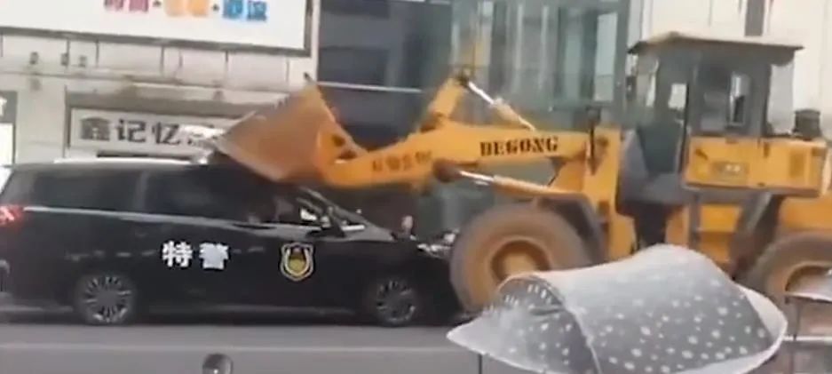 特警出动后,铲车司机竟然毫不犹豫的驾车狠狠冲向特警的车辆: