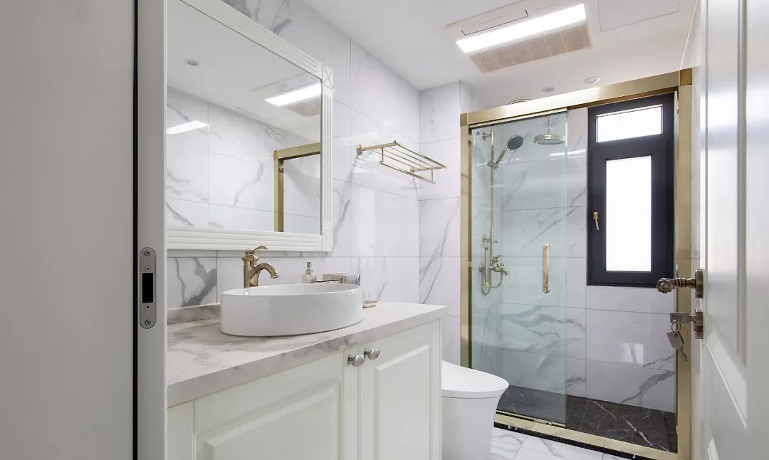 整个金属元素一直延伸到了卫生间,搭配大理石纹路的墙地面,优雅精致提升空间质感。