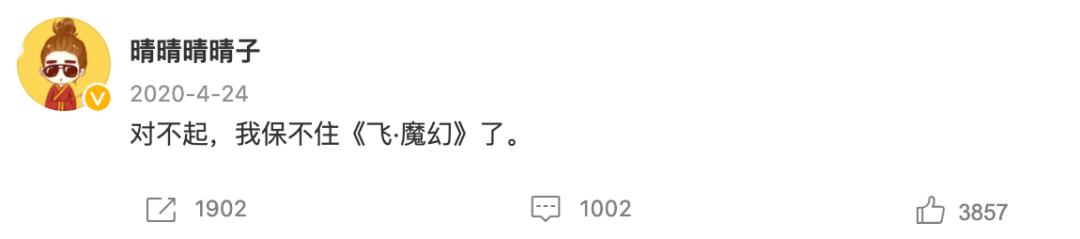 2020年4月24日,主编晴子一条“对不起,我保不住《飞·魔幻》了”的微博成功出圈。