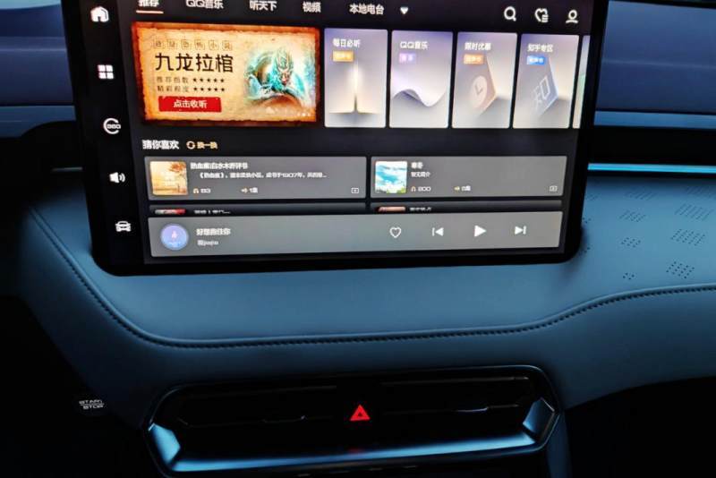 悬浮式中控屏显示效果相当不错,试了一下,操作时很流畅,另外内置的功能也比较多,听音乐看电影都很不错。