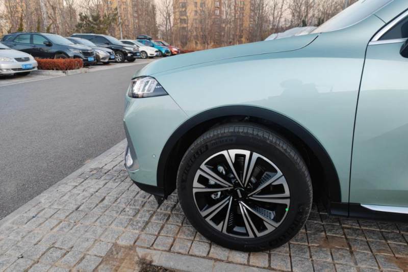 轮拱没有做特别的修饰,19英寸的米其林轮胎很给力,国产车就是配置高。