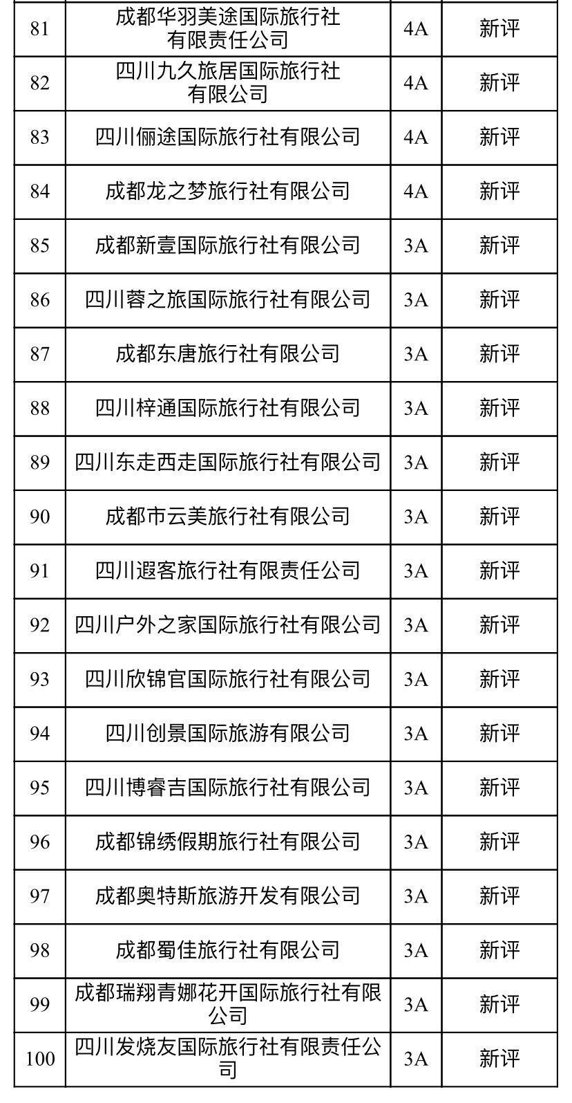 元旦假期的脚步越来越近,新的一年如何选择一家靠谱的旅行社出游?12月30日,成都标准评定委员会发布公告,公布2021年度诚信等级旅行社评定复核结果,成都市共有100家旅行社光荣上榜,其中5A级30家、4A级49家、3A级21家。获得5星将代表诚信等级最高。
