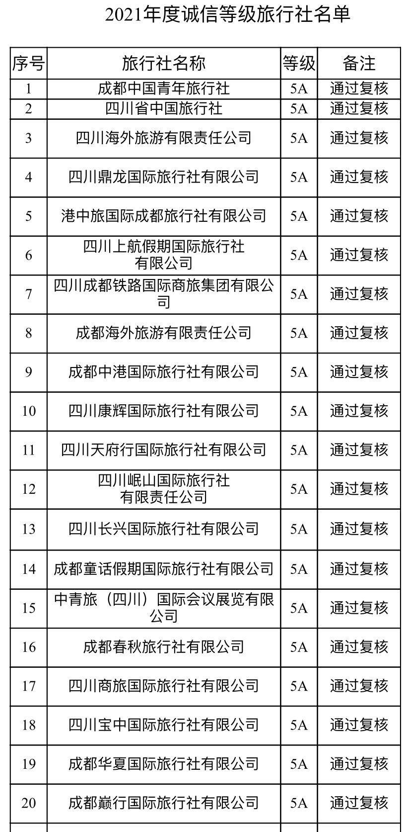 红星新闻记者了解到,今年8月,成都标准评定委员会在全市启动了2021年度诚信等级旅行社评定与复核工作。
