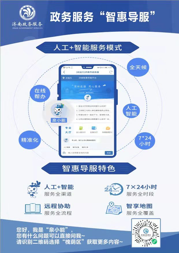 “目前中心配备了8名导服人员,工作日9:00-21:00、双休日9:00-17:00实时在线,可以第一时间回应企业群众提出的问题,其余时段利用强大的业务知识库和人工智能技术,由智能机器人填补办公时间外的服务盲点,实现全天候有问必答。”槐荫区“智惠导服”服务中心工作人员介绍。