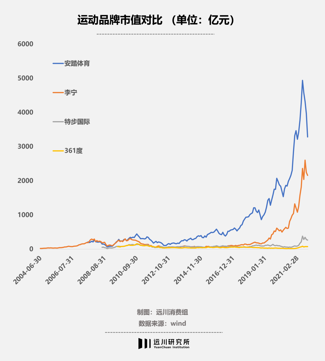 而更让李宁难以接受的是,短短两年时间,安踏的市值已经超过并远远甩开了李宁。《李宁惊梦》一文里曾经披露了一个细节,安踏的后来居上让李宁本人耿耿于怀,已经淡出公司管理层的李宁破例参加了一次高管例会,问了一个足以载入李宁发展史册的问题: