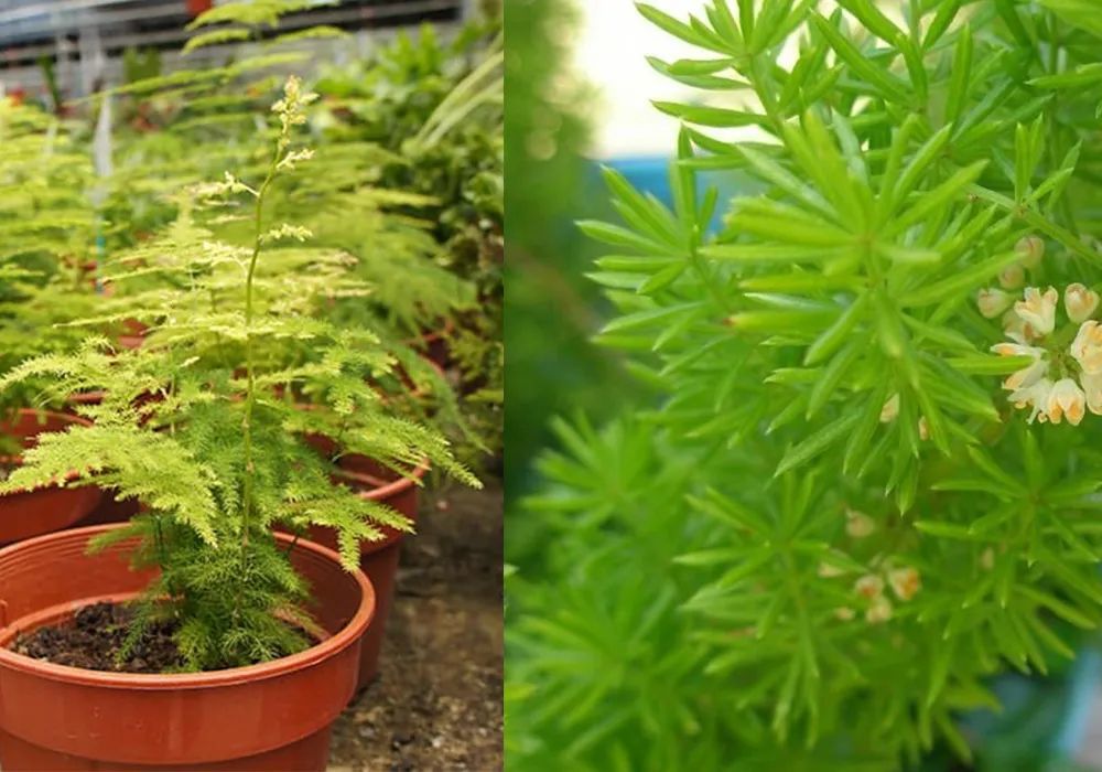 上面左边是文竹,右边是天门冬