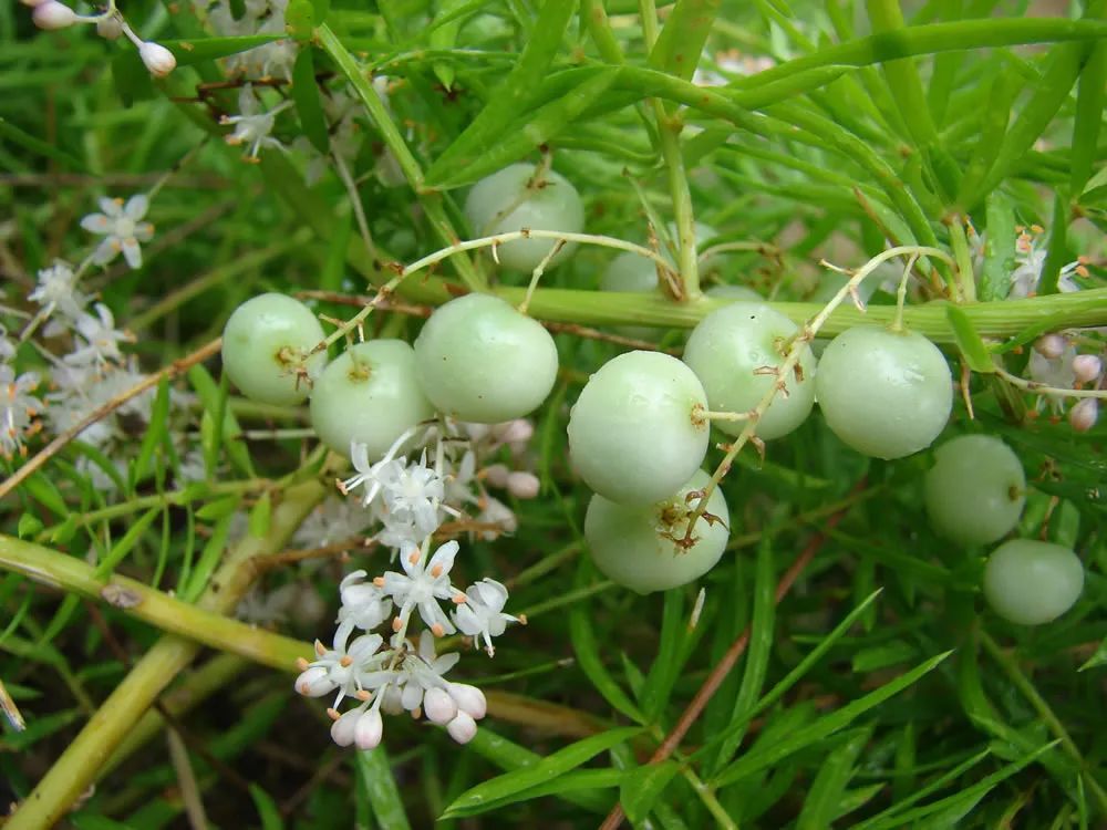 上面是天门冬和它的红色小浆果