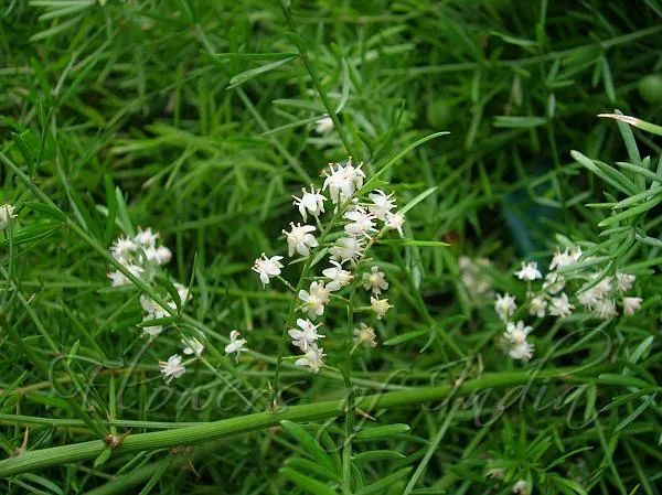 天门冬原本是生长在南非地区的,是属于百合科的一种常绿型观叶植物,如果养在有较多散射光的环境下,环境常年温暖温润,它还能开出一些精致的白色小花,它的花朵和文竹的花比较相似。