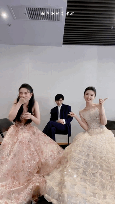 幕后是看着妹妹们玩闹的大哥——宋祖儿和毛晓彤在录最近很火的手势舞,中间的白宇一脸慈祥,两人看大哥无奈宠溺的表情笑疯了。