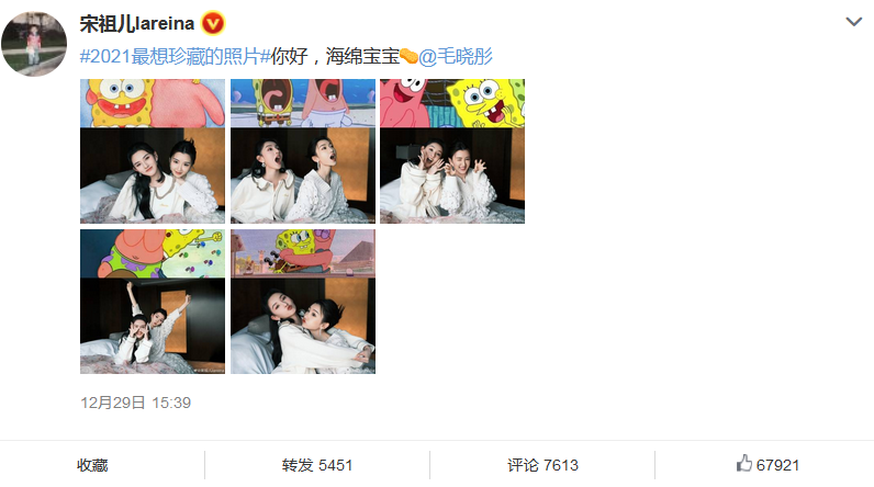 宋祖儿心中2021最想珍藏的照片是和毛晓彤的合照,