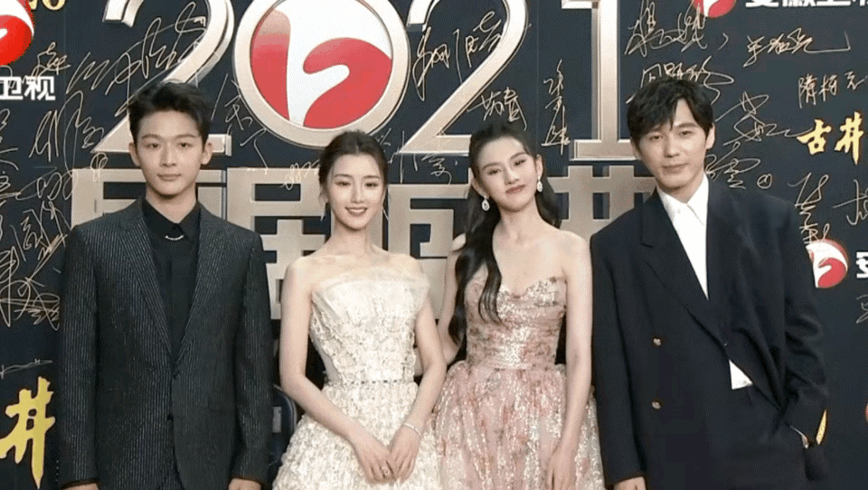 国剧盛典上,台前是迁就弟弟妹妹的大哥——其他三人按照年龄顺序摆pose,比着剪刀手的白宇瞥了一眼立马换成了一。