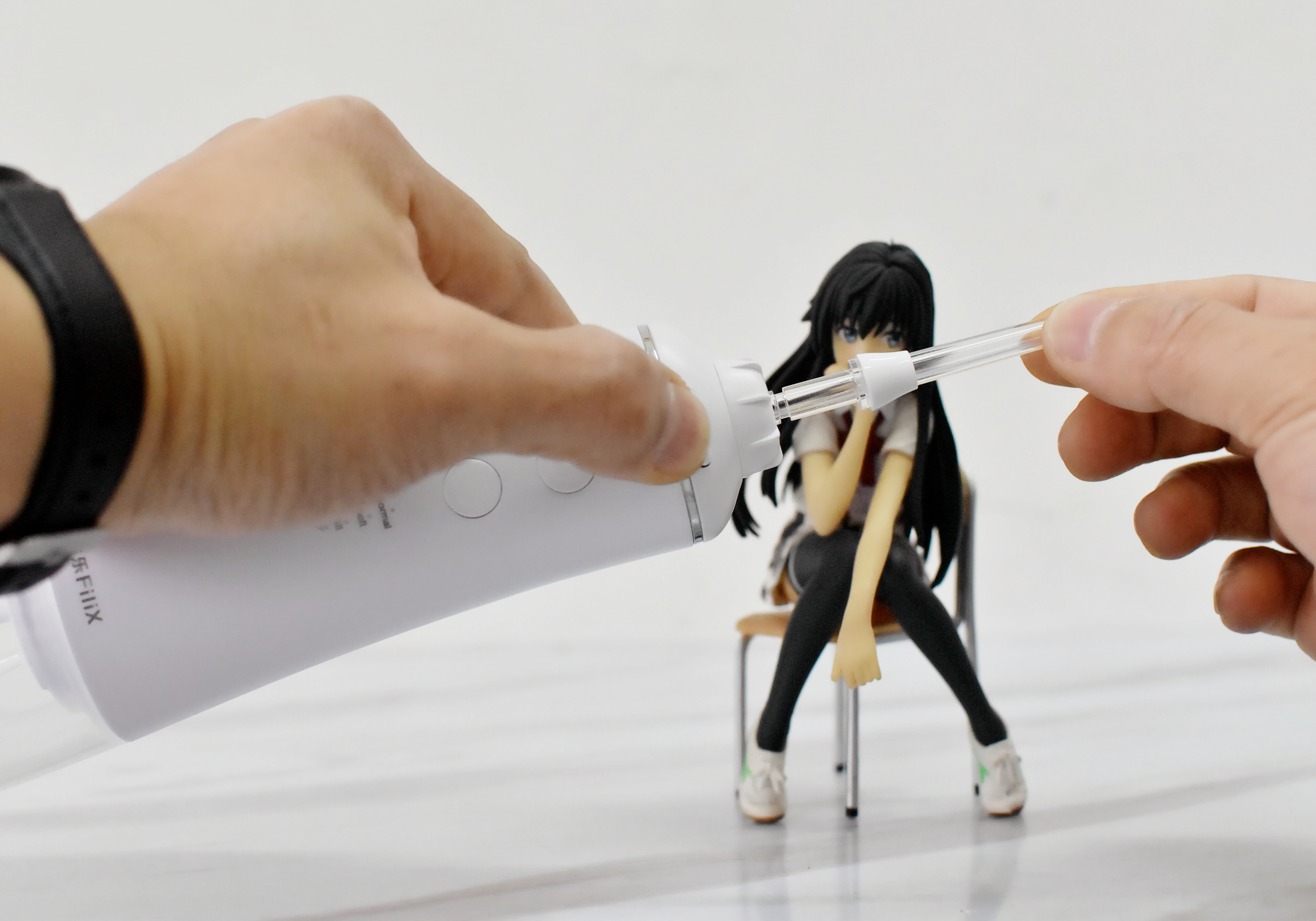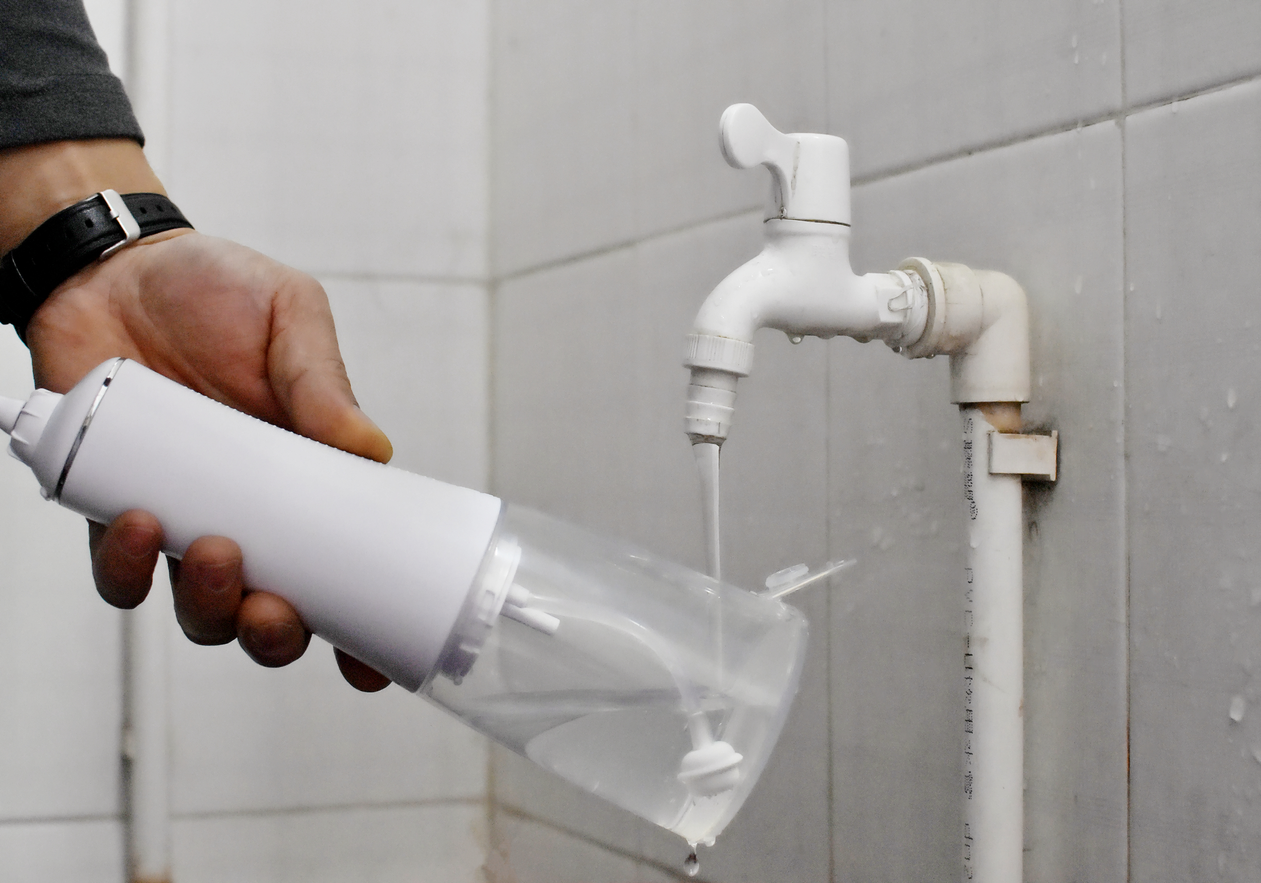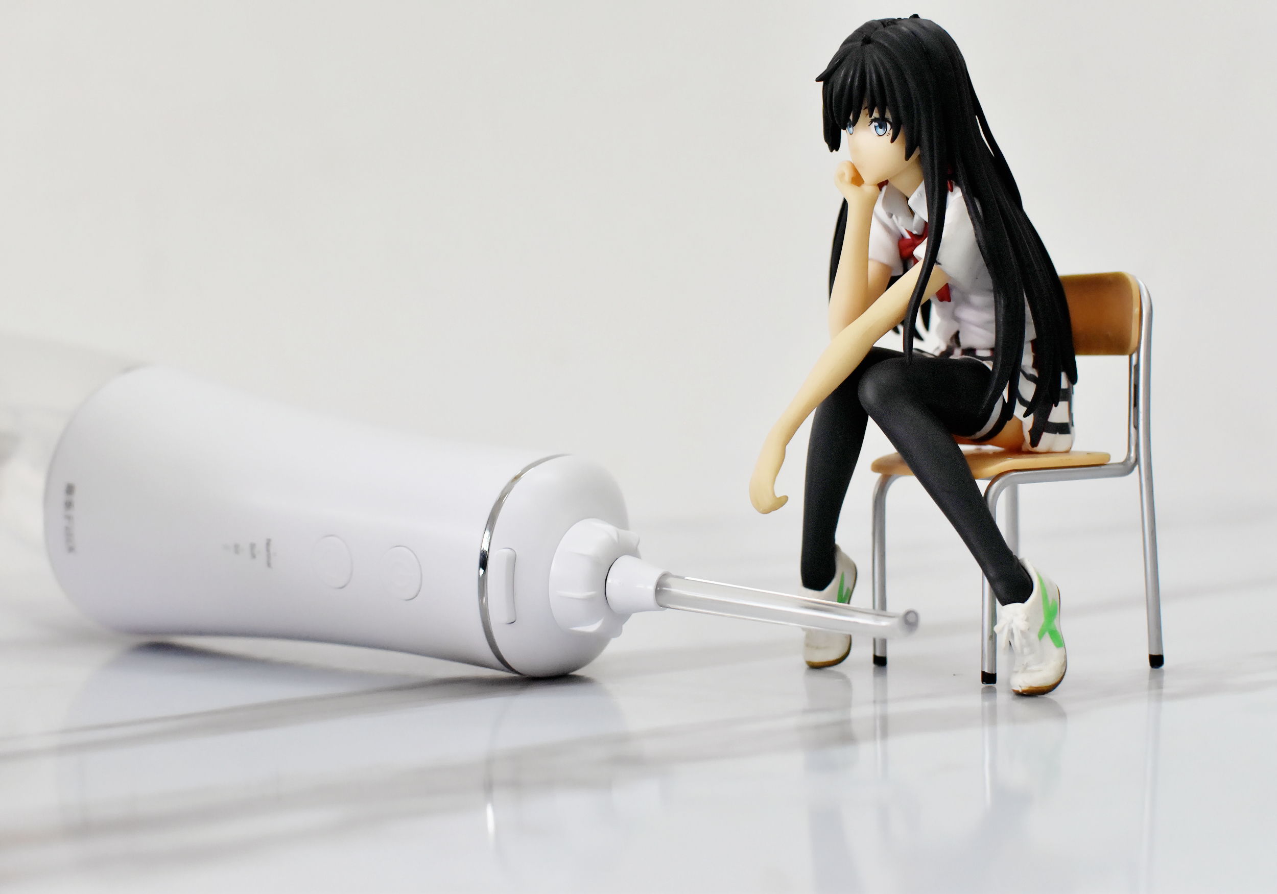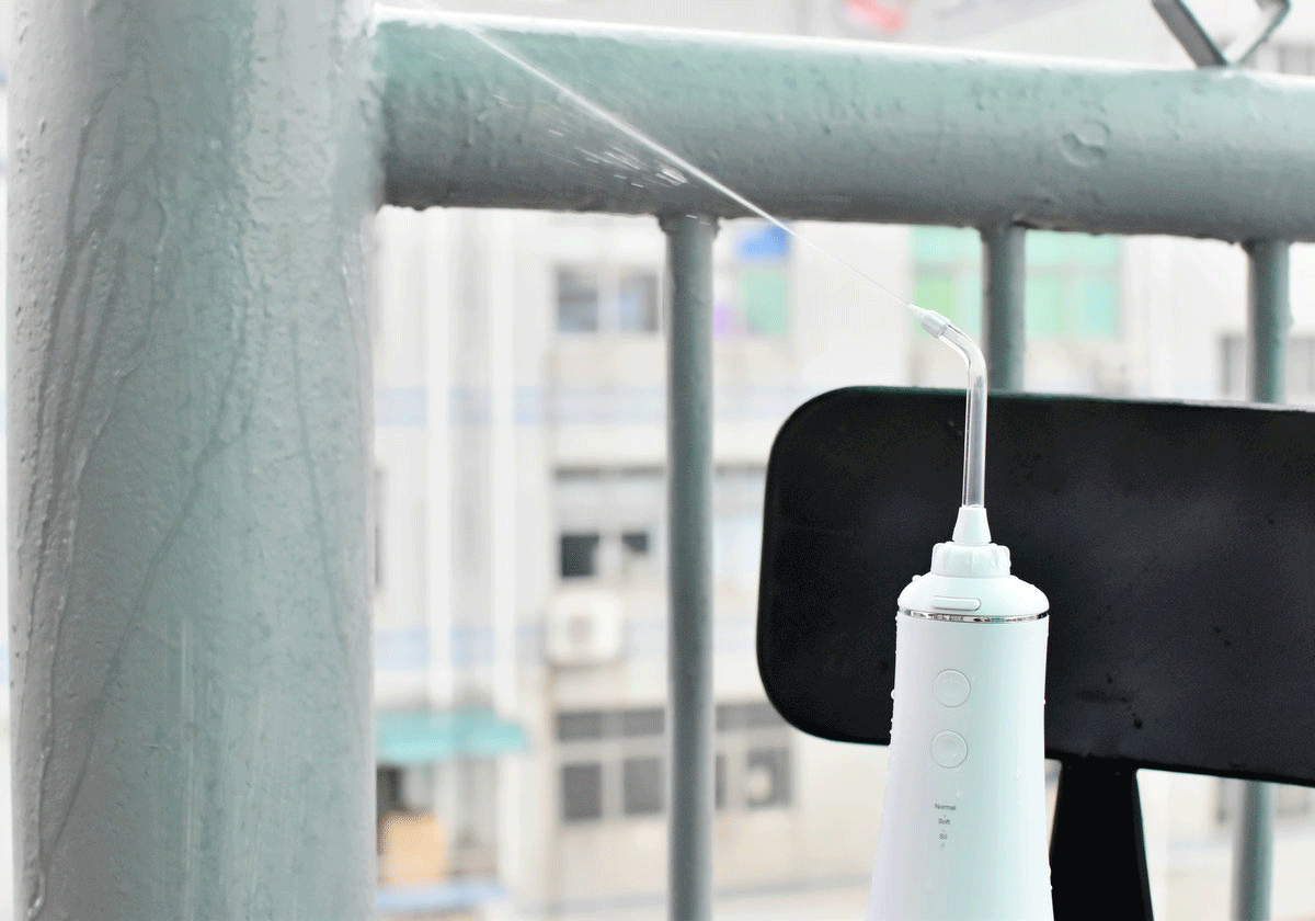 接下来就通过道具的演示为大家带来直观的冲洗效果,扉乐SII冲牙器的脉冲频率可达1000-1800次/分钟,压力3g-13g,压强范围30psi-160psi,在模式方面有3个日常档位+3个SII敏感档位,通过短按模式键切换,并且在指示灯的颜色和马达的声音上都能得到区分。设备记忆功能可以记住上一次关机时所在的档位,并且在关机状态下也可以进行模式选择,所以可以在关机状态下选好档位后再开机,避免对敏感人群带来“误伤”。