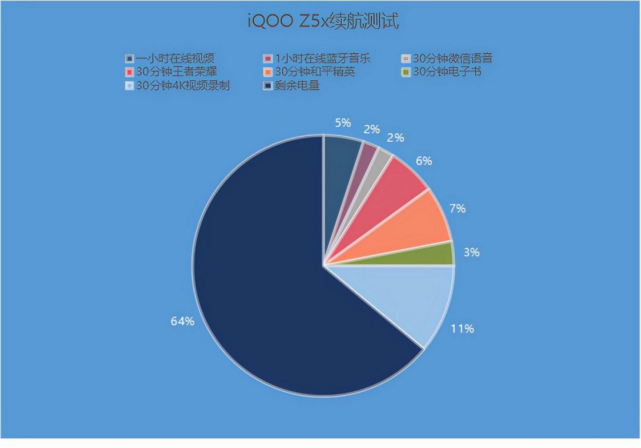 另外还有一个重点没提的是,iQOO Z5x的电池容量可是时下比较进步的5000mAh,真正用起来比一些旗舰机更为持久。经过实际重度场景测试后,事实也正如预料的那样,连续的游戏、听歌和视频等应用打开并没有让手机电量虚弱下来,相反还剩余了过半的储备电量。这也就意味着,普通用户完全可以应对一天的正常通勤使用,甚至可以两天一充。