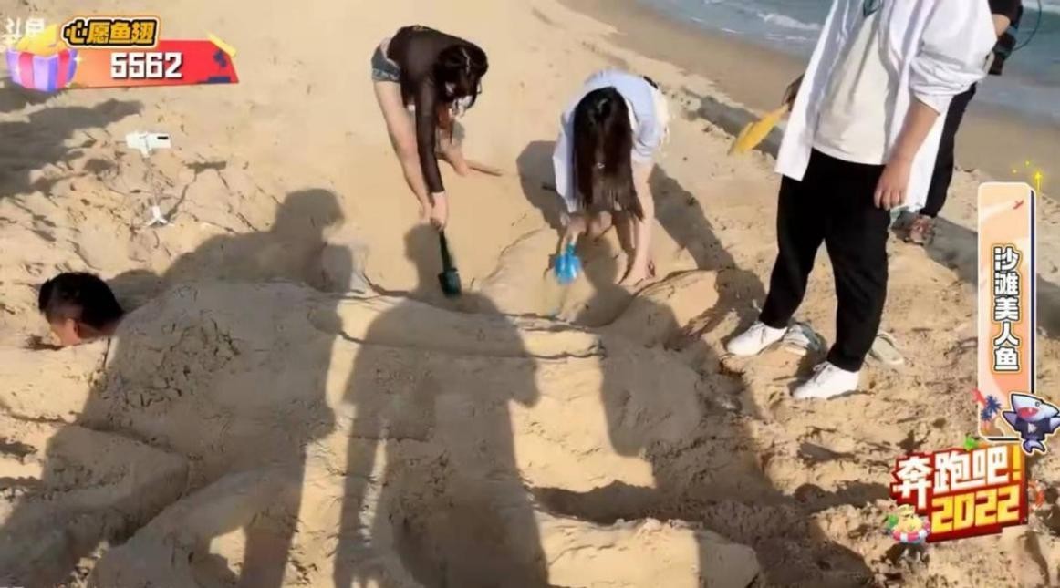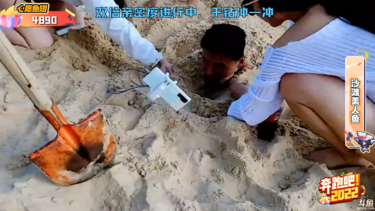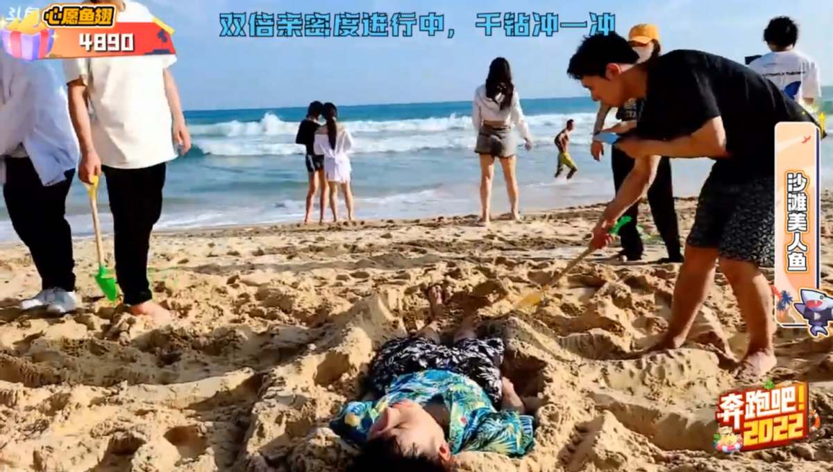 之后官方又准备了一个小游戏沙滩美人鱼,选出四位主播埋进沙滩中。摆出相同的姿势拍照,刚开始大家觉得让美女主播躺在沙滩中比较好看,但是正直博比较怜香惜玉,不舍得让女主播受苦。所以最后决定让男主播趴在沙滩中,其他人负责给他们摆造型,在沙滩中塑造“美人鱼”的形象,不过水友们纷纷觉得男主播太辣眼睛,一点不唯美。在任务完成之后,可以获得1200的鱼翅,虽然在大家的组织下,任务完美完成,但是男主播们也的确是牺牲了很多。