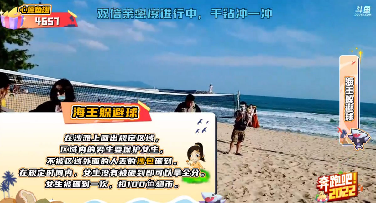 继《长白山一家人》后,斗鱼再次独家制作的真人秀《奔跑吧!2022》,户外与才艺主播再次相聚,从风情淳朴的东北雪乡直接来到了最具代表大海的旅游城市三亚。其中包括正直博、国民大舅哥,雯粥粥和胖胖C等12位主播,从12月28日到12月31日,与水友们一同跨年。