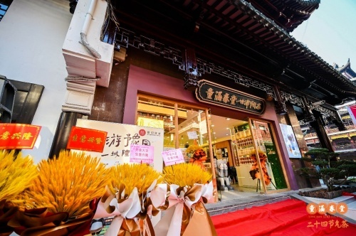 2021年12月31日元旦之际,国药老字号童涵春堂全面升级,在豫园华宝楼一层全新开设饮品专营店——二十四节气茶。